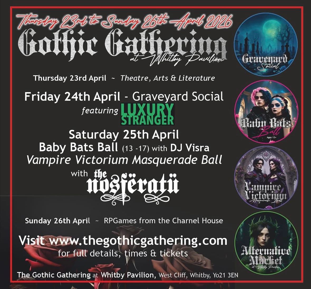 This show will be part of the Gothic Gathering which covers the Friday 24th and Saturday 25th April – we're playing on the 24th, and we can't wait!